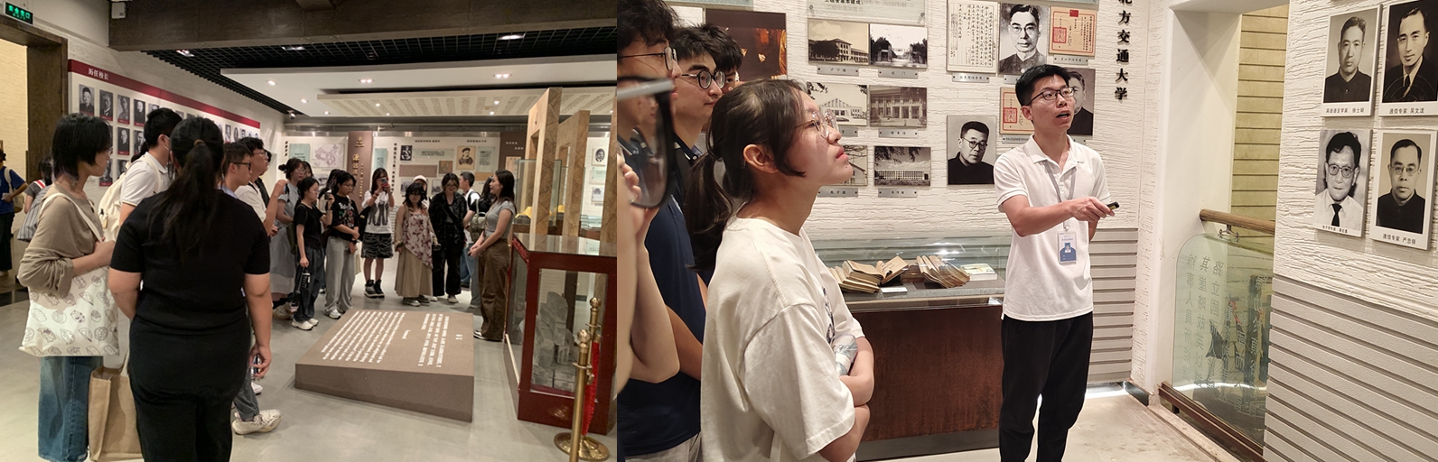 参观校史展览是新生入学教育的重要一环,是助力同学们坚定理想信念、厚植爱国荣校情怀的重要举措。自建校以来学校就具有与国家民族同呼吸共命运的红色基因,校史展览对学校百余年的发展历程进行了系统回顾。同学们随着学生讲解员的介绍,观看珍贵的历史图片和展览实物,感悟不同时期学校的办学理念、办学成绩和交大人“饮水思源、爱国荣校”的光荣传统。
